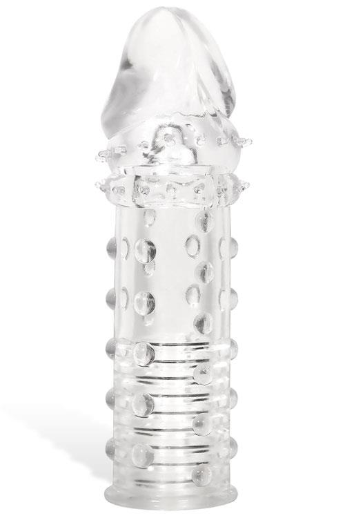 This semi-realistic jelly-textured penis extension is soft and stretchy to fit most sizes and features nubbed pleasure points inside and out to stimulate you and your partner.