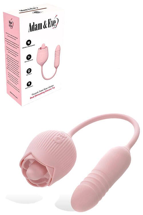 Adam and Eve Thrust and Tickle Rose 14.1″ Flickering Clitoral Tickler and Thrusting Bullet