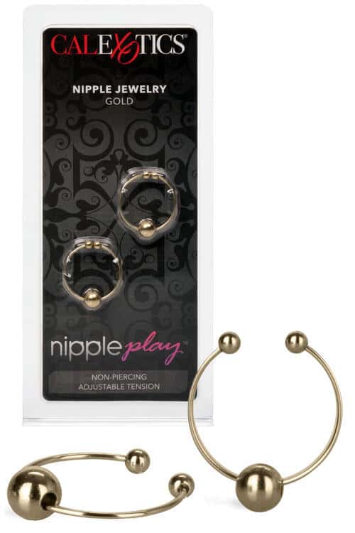 This set of two nipple rings is non-piercing and adjustable for variable fit. Simple slide over an erect nipple and squeeze gently to secure in place.