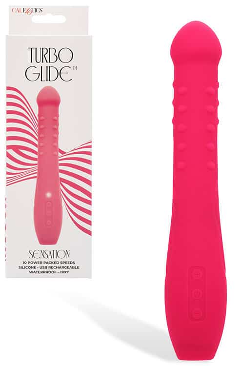 Turn things up with the Turbo Glide Sensation Classic Vibrator, your ticket to textured thrills and deep, toe-curling vibes.