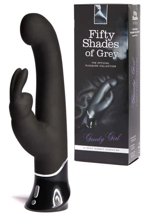 The Fifty Shades Greedy Girl is a must-have sex toy, featuring two powerful motors that deliver three speeds and nine patterns of vibration in the girthy shaft and three speeds of vibration in the clitoral stimulating rabbit ears.