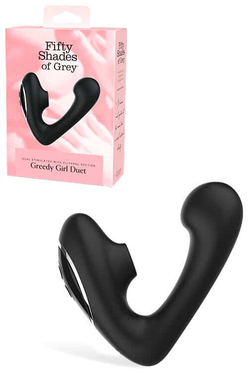 Indulge in the forbidden with the Fifty Shades of Grey Greedy Girl Duet a dual-action stimulator designed to bring your deepest desires to life with clitoral suction and g-spot come hither waving patterns .