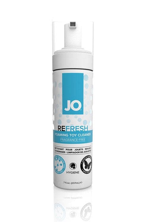 Your toys are good to you. Be good to them. JO Toy Cleaner sanitises, refreshes and extends the life of your favourite toys. Pump dispenses easy-to-use foam for greater visibility to ensure a full cleaning. Contains NO alcohol, glycerin or petro chemicals. Safe for use with all toys. Body Safe.