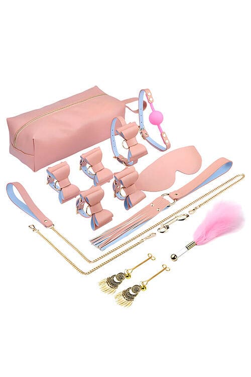 Indulge in elegant restraint with the BDSM Bowties 10-Piece Kit, beautifully designed in soft pink and blue tones.