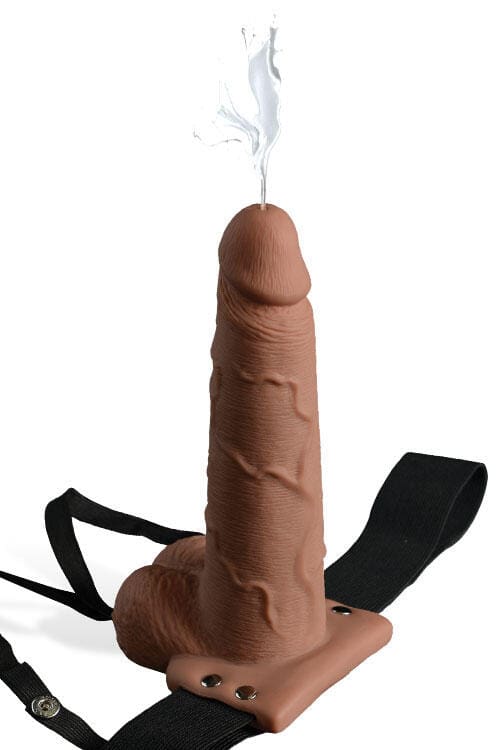 This firm hollow rubber strap on features a realistic textured shaft and balls for lifelike sensations as you create the feeling on an ejaculating penis.