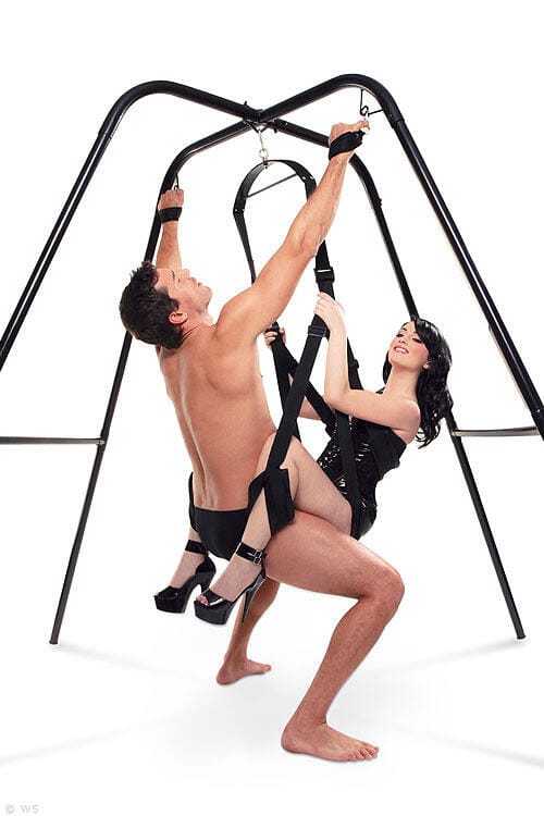 The frame also provides extra support for trying new positions in the swing. Both partners can use the heavy-duty overhead bars and crossbars for added support, leverage, and to help maintain balance in the swing. Without a swing attached, the stand can serve as a bondage brace to hold your subject in captivity.