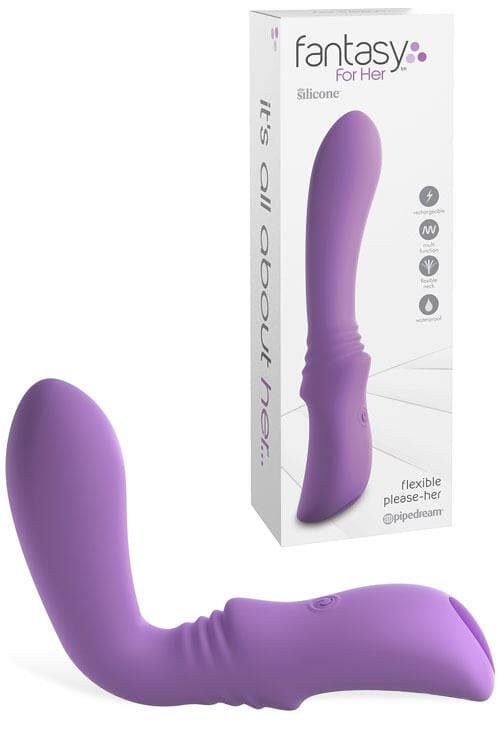 Crafted from super-soft, non-porous silicone, the Please-Her features and ergonomic, body-pleasing design with a large, flexible internal arm that respects the curves of your body, and 9 vibration functions available at the push of a button.