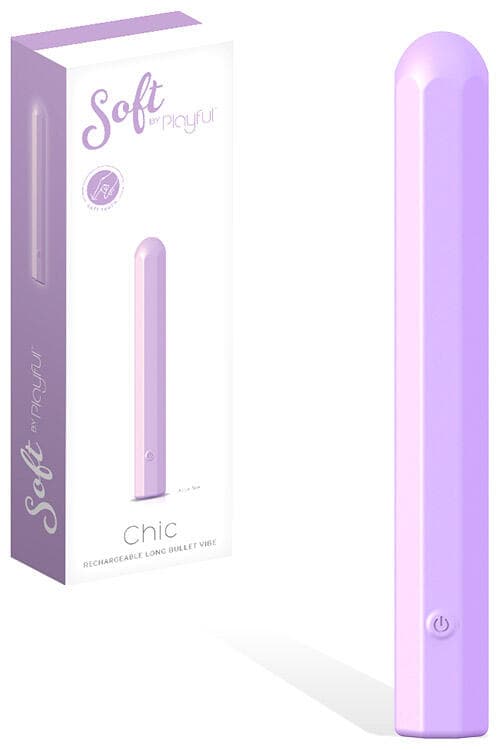 The Chic Bullet Vibe from the Soft by Playful range is made from marshmallow soft, squishy silicone that gives this extra long vibrator crazy flexibility. Through a full 360 degrees – that’s a complete circle! So instead of just the usual ‘use the tip for pinpoint clitoral pleasure and the length for broader coverage’, you can squish and bend and mould the vibe into the shape you need to hit the places you want. The tip is the tip, and the length is still the length, and the motor provides 8 speeds of vibration for you to enjoy, but you can twist it to cover more of you, or bend it to hit your G-Spot at the exact angle you need.