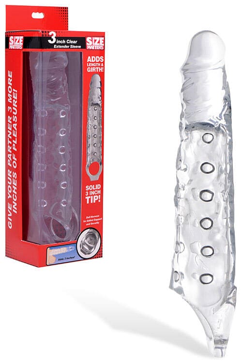 Get an extra 3 inches of length and 1″ of girth with this clear penis extension from Size Matters!