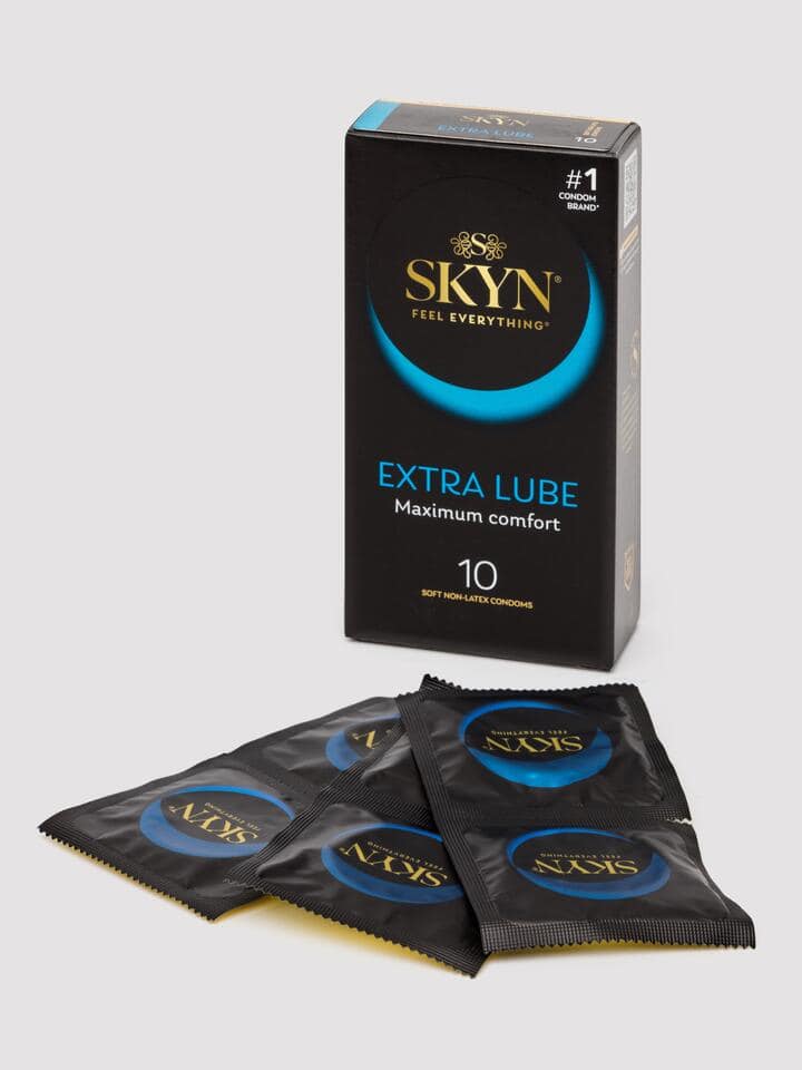 Enjoy enhanced stimulation during play with latex-free, extra slippery condoms from SKYN. Using 40% more lubrication, each condom provides a softer, more natural feel with quality, strength and sensitivity of an ultra thin condom. Ideal if you’re allergic to natural rubber latex, or find that latex condoms simply don’t provide a close enough sensation when you’re with your partner, these condoms boast a reservoir end for comfort and reliability and have a nominal width of 53mm Made from SKYNFEEL, a technology advanced non-latex material, a skin-to-skin feeling that’s unlike other condoms is all yours. This, alongside the extra lubricant, help to provide maximum comfort and an enhanced pleasure experience for both partners during sex.