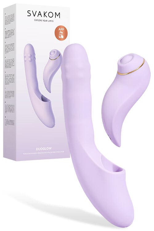 Svakom DuoGlow 7.7″ Heating, Thrusting & Rotating Vibrator with Detachable Clitoral Stimulator