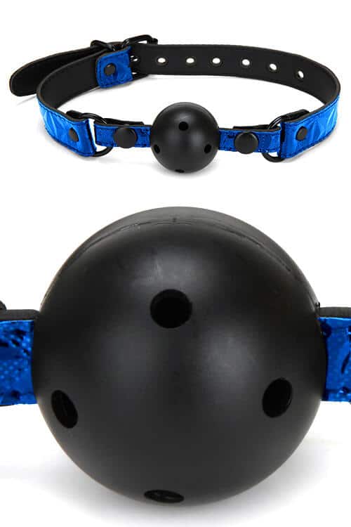 This ball gag is made in a shiny blue design from supple faux leather, featuring a stylish diamond pattern.