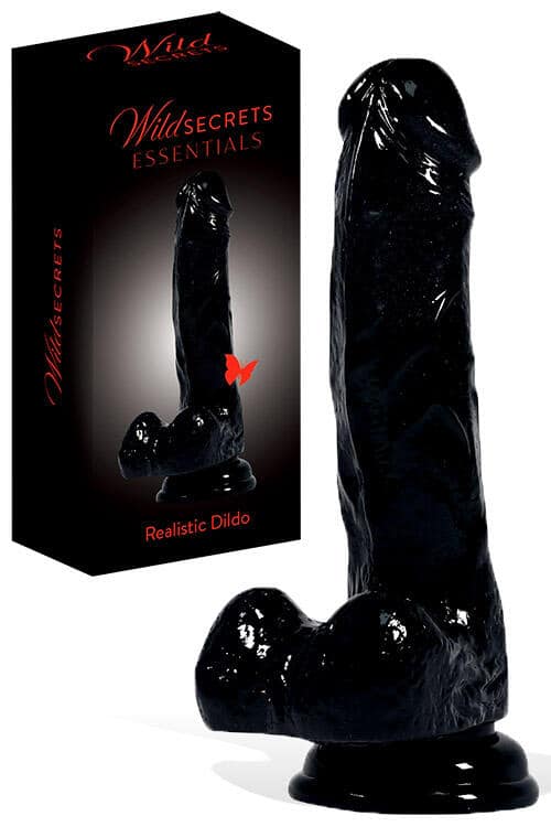 Wild Secrets Essentials 7″ Black Realistic Dildo with Suction Cup Base